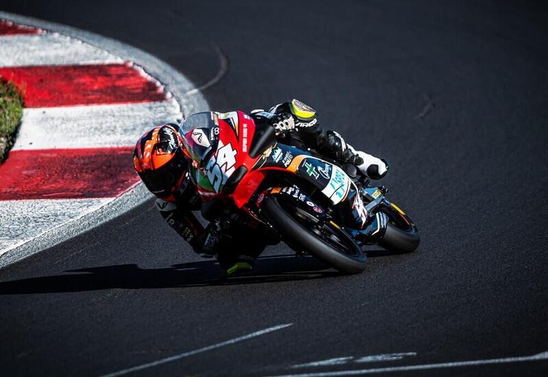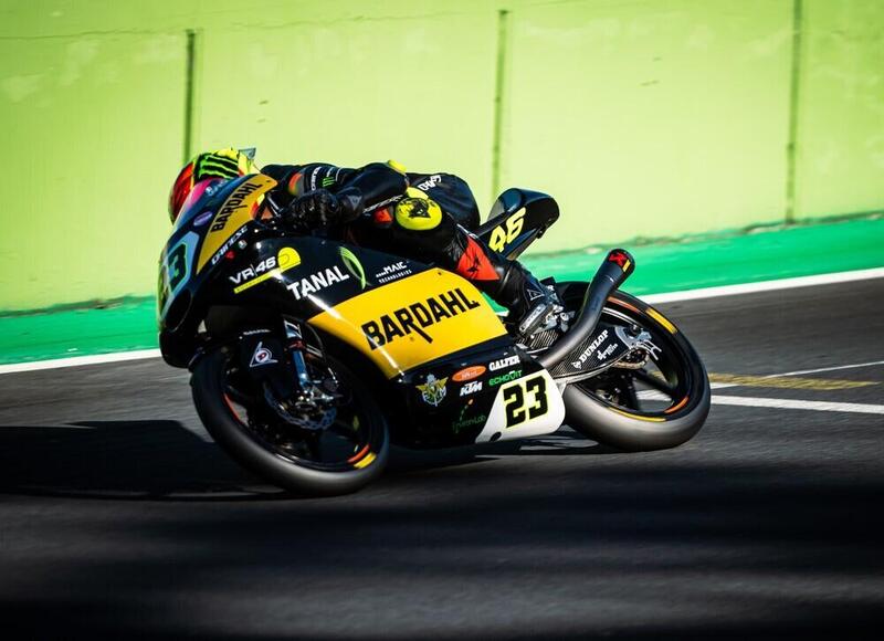 Finale incandescente quello della Moto3. Elia Bartolini della VR46 Academy e Matteo Bertelle del Team Minimoto, staccato in classifica di due soli punti a favore del primo, hanno dato vita ad una sfida avvincente, con staccate al limite, sorpassi millimetrici e sbandate da infarto. Una lotta tra due piloti che si sono praticamente equivalsi per tutta la stagione, e che si sarebbe potuta decidere per un dettaglio, per qualche piccola differenza. E a fare la differenza è stato l’airbag della tuta di Bertelle, che si è gonfiato a tre giri dal termine, a seguito di un contatto tra il pilota del Team Minimoto e quello del VR46. Sino a quel momento i due giovani piloti si erano avvicendati al comando della gara senza riuscire a distanziarsi, e tutto faceva presagire ad un arrivo in volata. A tre giri dal termine il colpo di scena: la ruota anteriore di Bartolini toccava quella posteriore di Bertelle.