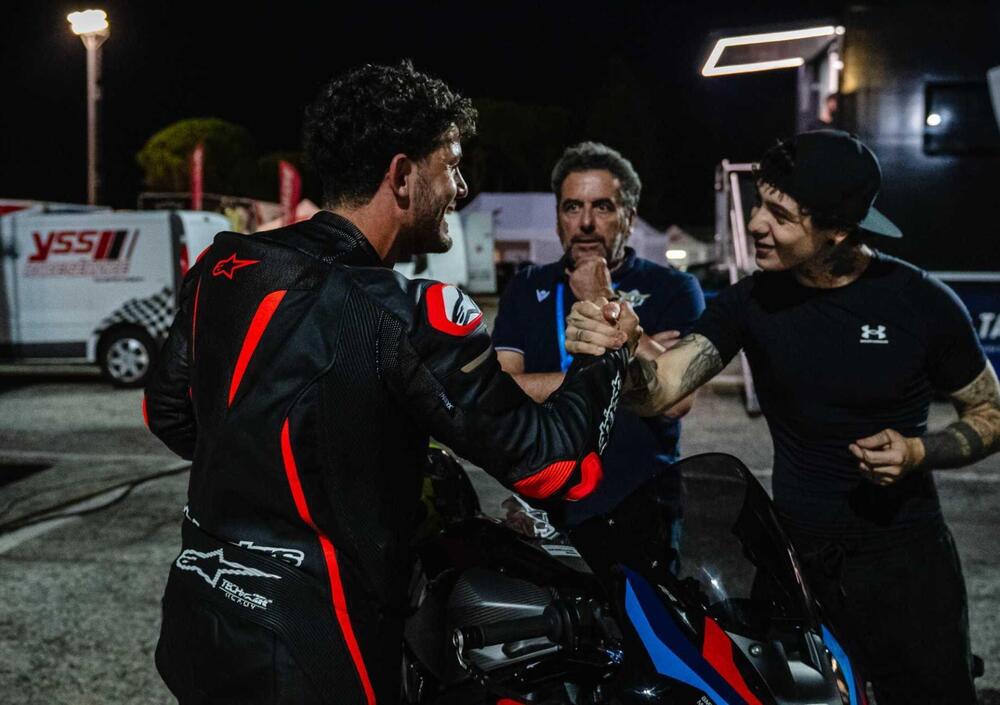 Dopo qualche giro il cervello si abitua - il fisico meno - e si entra in trans: il ritmo sale, ma già dopo 10 minuti la M 1000 RR ricorda perché i piloti si chiamano effettivamente piloti... Dopo poco il turno finisce, ma che emozione! Ad accoglierci niente meno che Michele Pirro e Alessandro Delbianco, con cui abbiamo scambiato qualche chiacchiera da impallinati.