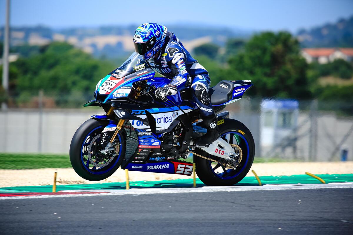 Ancora Delbianco! Il pilota Yamaha è in simbiosi con la sua R1, imprendibile. Chiude in prima posizione con più di 7 secondi di vantaggio su Michele Pirro. La terza posizione è di Giannini.