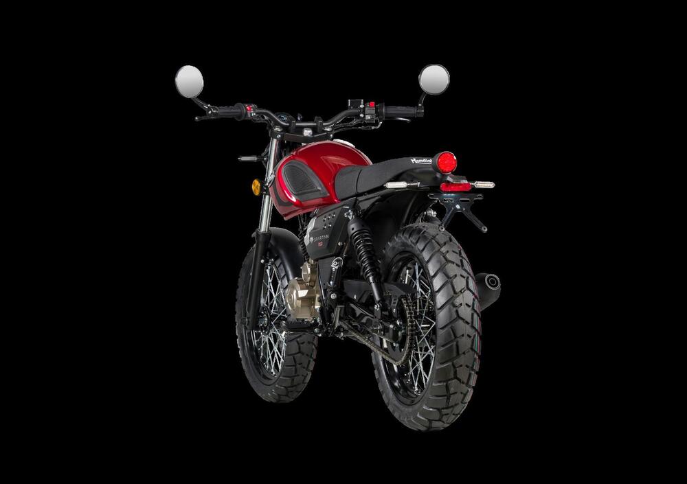 La Spartan 250 è proposta per l’ambiente urbano e unisce il moderno al retrò per un pubblico che parte dai ragazzi di 18 anni, caratterizzata dalla posizione che prevede una sella bassa. Ruote a raggi da 17”, cambio a 6 marce, forcella tradizionale, doppi ammortizzatori posteriori e pinza assiale a 2 pistoncini. Disponibile dalla primavera 2024. Prezzo: 3.290 euro.
