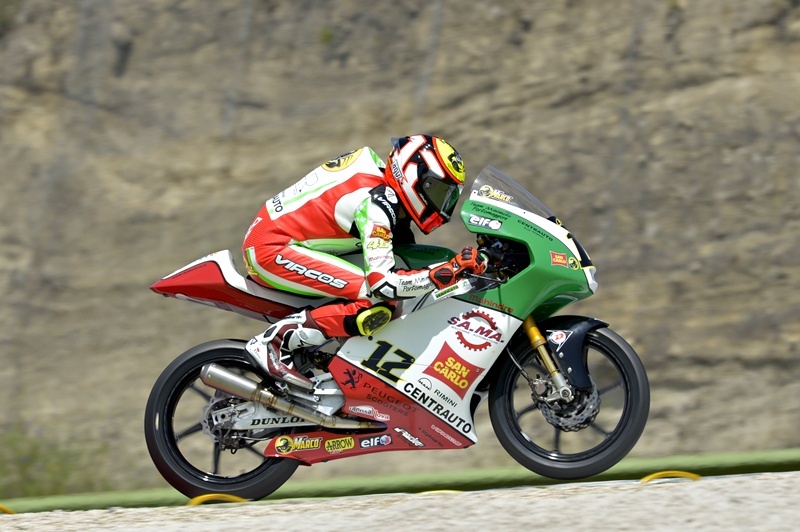 E’ da sempre la categoria più spettacolare del CIV e anche le gare di Vallelunga lo hanno confermato. Sabato Bezzecchi è partito in testa, ma ha osato troppo ed è caduto dopo poche curve lasciando via libera a Di Giannantonio che ha vinto la resistenza di Spiranelli e Groppi. Quarta piazza per Del Bianco davanti ai rookies (provengono dalla PreMoto3) Sintoni e Foggia. La domenica Bezzecchi è partito con il dente avvelenato e per la prima volta in questa stagione un pilota è riuscito a vincere per distacco una gara della Moto3. Assieme a lui sono saliti sul podio proprio Sintoni e Foggia, che dimostrano di crescere rapidamente. Solo quarto Di Giannantonio che però in classifica è secondo ad un solo punto dal leader Bezzecchi. Terza posizione per Spiranelli che ha accumulato 58 punti contro i 52 di Del Bianco ed i 42 di Sintoni.