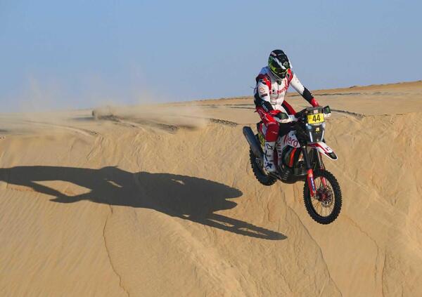 Decimazione! Impressionante. Prima tappa. Moto. Ross Branch strina il motore della Hero e deve procedere con cautela estrema per portare al bivacco la continuazione della sua corsa (che passa a concentrarsi sul Campionato del Mondo). Auto. Cristina Gutierrez la vincitrice Challenger della Dakar, resta senza liquido di raffreddamento. Stesso, penoso calvario per oltrepassare il traguardo e passare dietro, e dietro…. Seconda tappa. Moto. Si fermano Docherty e Ebster, entrambi per caduta. Il sudafricano era in testa al Rally, il nipote di Heinz Kinigadner quarto assoluto. Auto. De Mevius insacca l’Hilux e si fa portare in ospedale per controllare la colonna. Niente di grave, per fortuna, ma naturalmente è out. Era secondo a tre minuti da Al Attiyah. Terza tappa. I famosi 15 minuti di ritardo di Al Attiyah e Boulanger e, soprattutto, l’incredibile incidente di Yacopini e Prokop. Nello zigzagare tra le dune, dopo una tagliata l’argentino trova, e centra al bersaglio grosso, la Ford detta “Shreck” del Ceko. Nessuno si fa male, ma le macchine sono incastrate e ci vuole un bel po’ perché entrambi si rimettano in pista. Ancora più incredibile, la Toyota di Moraes si incendia prima del traguardo ed è divorata dalle fiamme subito dopo. Sulla sabbia resta solo il telaio, tutto il resto è andato letteralmente in fumo. Il brasiliano era secondo assoluto. Quarta tappa, è la volta dell’insaccata di Guerlain Chicherit, si fa male, ma non troppo, il navigatore Alex Winocq. Prima, seconda… quarta e quinta tappa, Laia Sanz e Maurizio Gerini sono quotidianamente in panne. Il Taurus Challenge gentilmente offerto da Red Bull alla Principessa del Deserto non doveva essere troppo “fresco”, e da Taurus si è trasformato in Somarus. Una volta “decimato”, il Rally si stabilizza e porta a casa esito e sopravvissuti.