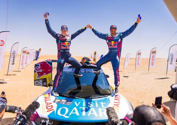 La gara (interessante e cinica) delle Auto. La vittoria di Nasser Al Attiyah era la scommessa più gettonata, non troppo “strozzata” dai malumori dakariani del Principe del Qatar e limitata soltanto dall’oggettività di una certa fragilità della Prodrive realizzata in Inghilterra per i Gran Premi del Deserto. Pilota e Team avevano raffreddato la relazione (“Non guiderò mai più questa macchina!”), poi si sono riparlati e, considerato che per altri tre anni almeno dovranno convivere (leggi avvento Dacia alla Dakar), tanto valeva trovare la via dell’accordo e della riappacificazione. Al Attiyah è tornato al volante dell’Hunter e Sir David Richards è stato ben attento a fargli fare una Hunter affidabile. La grande novità era il debutto di Eduard Boulanger a fianco del Principe. Il terzo giorno qualcosa non ha funzionato, tanto che la Prodrive #206 è scesa dal primo al secondo posto e in testa è passato Set Quintero. Immediatamente prima e soprattutto dopo, Nasser e noialtri, tutti abbiamo capito che l’innesto dell’ex navigatore di Stephane Peterhansel è un plus nel cockpit dell’Hunter “Visit Qatar”, una differenza che non farà rimpiangere Mathieu Baumel. Quella “svista” del terzo giorno ha portato allo scoperto il potenziale di due new entry della Ultimate, Guillaume de Mevius e Seth Quintero, Toyota Hilux per entrambi. Il belga è caduto nella rete della decimazione del Rally, l’americano si è immediatamente ambientato nell’upgrade dagli SSV alle regine del Rally-Raid. Dalla quarta tappa Al Attiyah diventa All Attack e in quattro e quattr’otto azzera il ritardo, passa al comando e va a vincere facile.