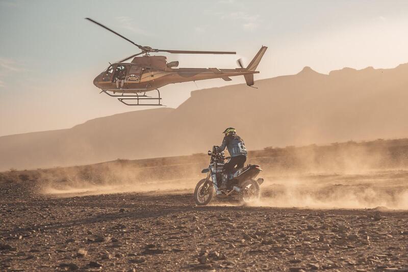 Così è stato per la nona tappa, il secondo anello di Amodjar, quello intitolato a René Metge, co-fondatore di Africa Eco Race. La tempesta si alza di buon mattino. Sono situazioni nelle quali vengono meno soprattutto le condizioni di sicurezza. La visibilità è troppo limitata e gli elicotteri non si alzano. La partenza della Speciale viene dapprima rimandata, poi si decide di far partire il convoglio per raggiungere un punto di partenza più avanti. I Piloti sono riuniti e si aspetta, nessuno ha voglia di lanciarsi in Speciale. Oltre al disagio tutto diventa più complicato, incerto. Infine la Direzione di Gara prende la decisione: la Speciale è annullata, si torna tutti al bivacco di Amodjar. Non è un evento eccezionale, in questa area del Sahara.