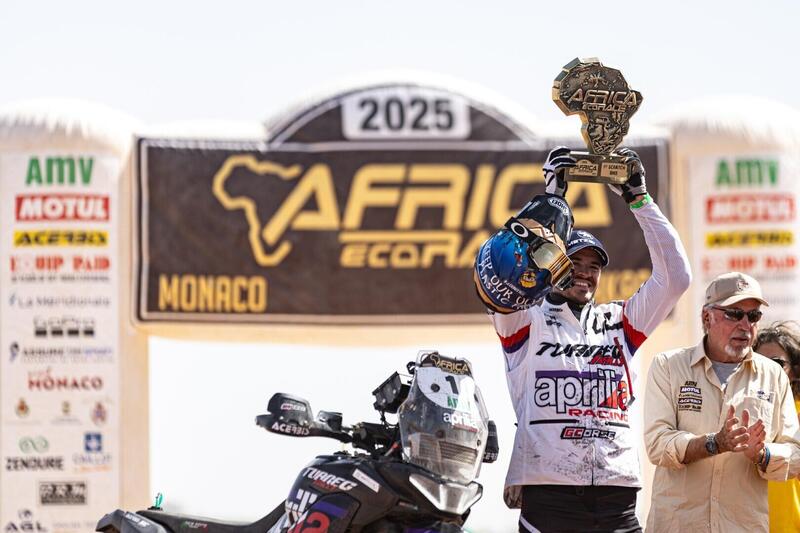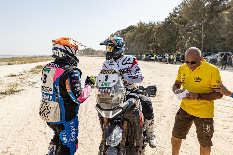 Dakar, Senegal, 12 Gennaio 2025. La 16ma edizione di Africa Eco Race arriva a Dakar e si conclude sulle rive del Lago Rosa. Alessandro Botturi, Yamaha, vince l’ultima spettacolare, informale Speciale di 22 chilometri con partenza in linea sulle rive dell’Atlantico. Il risultato generale, tuttavia, è già stato fissato il giorno precedente con la vittoria di Jacopo Cerutti e di Aprilia, la seconda consecutiva, vale a dire en plein da quando Aprilia Racing è scesa in campo.