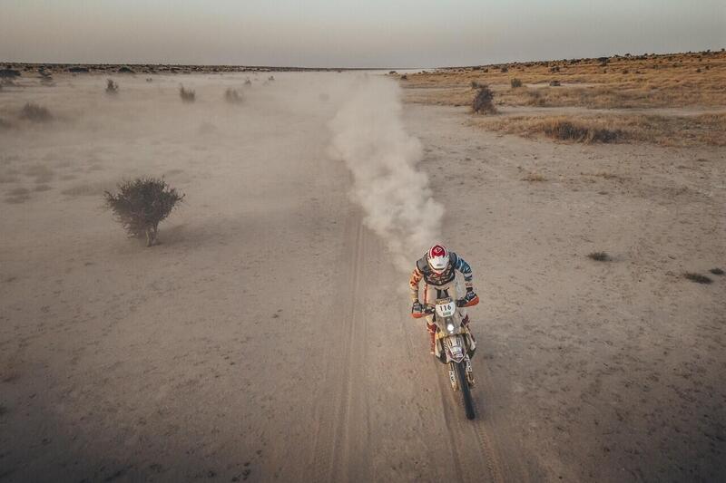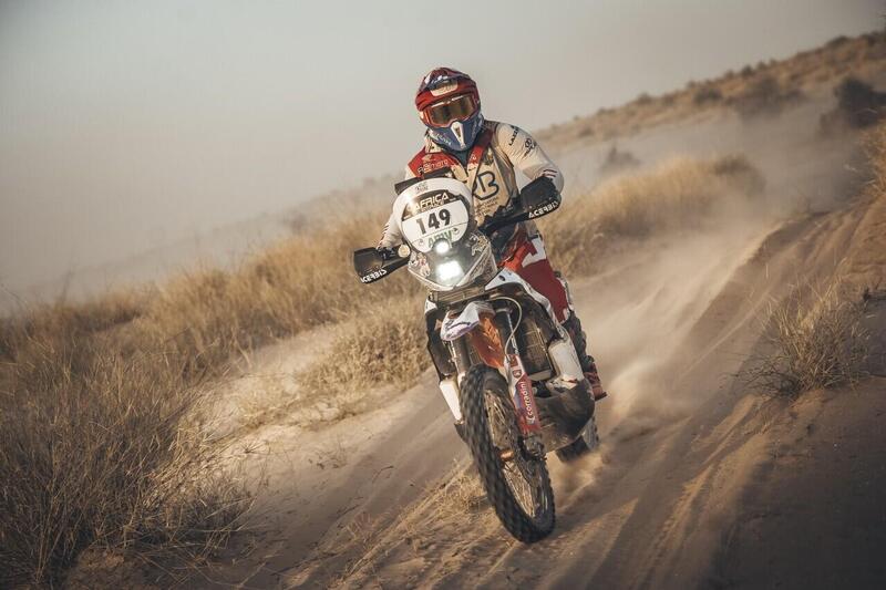 La Trilogia dell’Inferno è finita. Chami, Akjoujt, Ouad Naga. Quasi 1.500 chilometri di Speciali in tre giorni. Difficoltà crescenti, energie in calo vertiginoso, molti in riserva. Partiti con 40°, Piloti sfiniti con oltre 50° in uno dei Deserti più belli del Mondo. Anche uno dei più micidiali, come si diceva. A Ouad Naga, al termine dell’”anello” di 455 Chilometri, vince Stefan Svitko, KTM. Maurizio Gerini Husqvarna Solarys, secondo, arriva dopo sette minuti, Pal Anders Ullevalserter, KTM, è terzo a ventidue. Botturi sesto, Guerrini 14°, Bellini subito dopo. Grandi tutti! È la tappa più bella del Rally e, secondo Svitko, della sua intera carriera di Africano. Sembra quasi legittimo celebrare anzitempo l’ordine di classifica generale che ormai si deve considerare definitivo: Svitko, Gerini, Flick. Lo slovacco si conferma, è uno dei dieci più forti del Mondo. Gerini è cresciuto tantissimo, alla velocità adesso aggiunge l’autorità del valore conquistato sui campi di battaglia. Flick è una bella scoperta, essere primi delle Malles Motul e terzo assoluto è da considerarsi un primato di eccellenza.