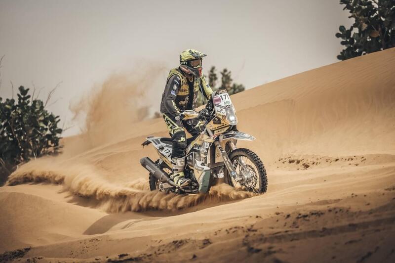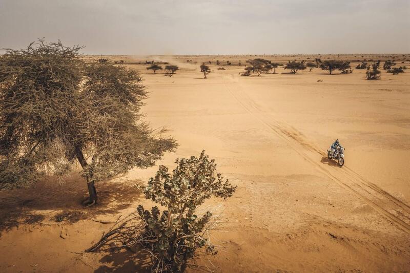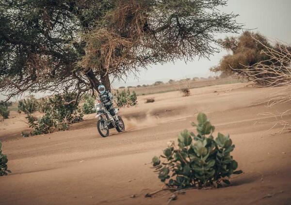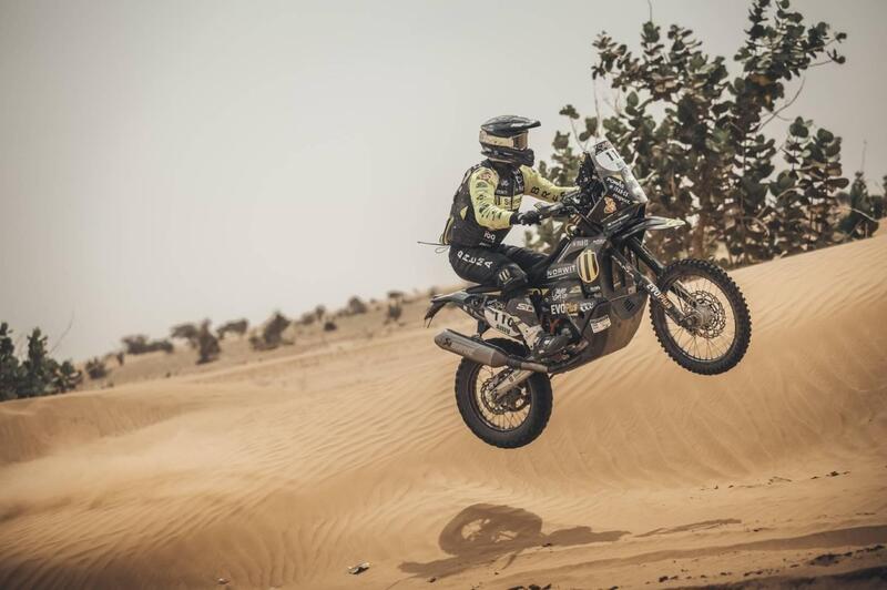 Chi crede che Africa Eco Race sia un Rally alla portata di… bene, tagliamo corto: si sbaglia. La corsa di Jean Louis Schlesser è un inferno di selezione, diremmo un confronto sempre impari con gli elementi. L’ottava tappa, l’anello di Akjoujt, lo ha reso manifesto, evidente. C’è un duello micidiale per il primato assoluto che vede protagonisti Stefan Svitko, KTM, e Maurizio Gerini, Husqvarna, e un abisso di sofferenza alle spalle del duo di testa. Sul palcoscenico maestoso della Mauritania la competizione brucia tempestata dal sole, il termometro costantemente sopra i 40-45 gradi. Non c’è scampo. E non c’è scampo, a giudicare dalla ottava Speciale, 423 chilometri, per Maurizio Gerini. Il valore del vantaggio accumulato da Svitko al termine della settima tappa è inestimabile, e a Gerry non resta che non mollare, attaccando costantemente. Oggi Gerini, che partiva per secondo un minuto dopo lo slovacco, ha raggiunto il rivale, che lo aspettava, dopo appena sei chilometri, e non è più riuscito a scrollarselo di dosso, neanche forzando l’andatura, neanche facendo finta di sbagliare per disorientarlo.