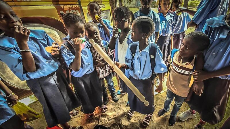 Così la sera del 2 Novembre il pullman TesoroBus ha raggiunto Kabrousse, regione di Casamance, Senegal. I bambini dormivano, probabilmente con difficoltà sovreccitati dall’imminenza dell’evento, così si è atteso la mattina successiva per dare il via alle operazioni di consegna. Varcate le soglie della sua ultima destinazione di viaggio TesoroBus è entrato nel cortile del villaggio-orfanotrofio delle suore del Sacro Cuore e si è consegnato, mittente, vettore e plico, ai suoi bambini. Due ali di folla applaudivano in delirio, una folla tutta sotto il metro e 30. Loro, i bambini, destinatari e obiettivo del progetto TesoroBus. Riavvolgendo il nastro dell’impresa si deve risalire il tempo di oltre un anno e mezzo, quando era tutto pronto e, improvvisamente, tutto non s’aveva da fare, tutto si stava arenando. La pandemia, il blocco delle frontiere africane, nuove trappole formali, un fronte che a un certo punto ha rischiato di vanificare gli sforzi del Gruppo o di farlo arrivare lungo, troppo lungo.