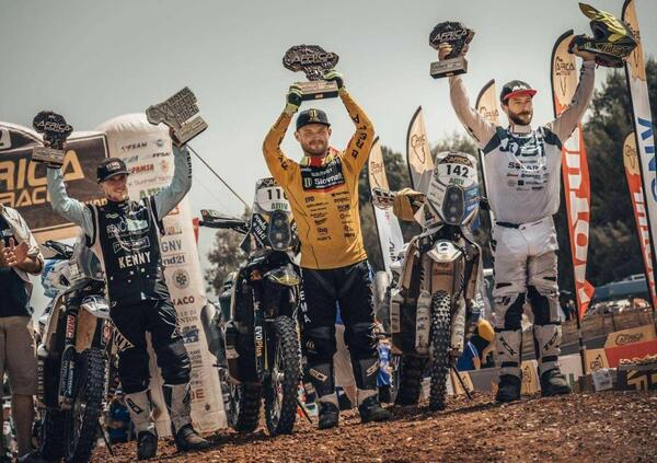 Poi il podio. Sulla spianata del Lago la celebrazione del risultato di Africa Eco Race. Ha vinto Stefan Svitko, KTM, con quattro successi di tappa più il “power stage” Lac Rose. Sono 5 successi inequivocabili, una specie di grande slam del Deserto, ottenuto vincendo nelle condizioni più disparate e, naturalmente, estreme. Che Svitko fosse forte non era mai stato messo in dubbio, né alla vigilia di Africa Eco Race né… ancora prima. Lo slovacco, infatti, è da sempre considerato il più veloce dei privati, e il fatto che corra con un Team di famiglia e di casa sua non deve trarre in inganno. Nei piani di Stefan tutto, dalla preparazione alle scelte tecniche, dai programmi ai… risultati, riflette una linea di obiettivi mai negoziabili. Quindi non è senno di poi ma consapevolezza. Quel che “non torna”, semmai, è che fino a metà Rally, fino alla giornata di riposo di Dakhla e dopo 5 Tappe e altrettante Speciali, in testa ad Africa Eco Race c’era Maurizio Gerini, Husqvarna.