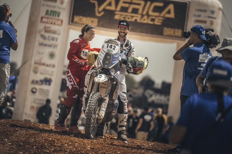 Sono 10 gli italiani classificati, e qui si dimostra che anche un Rally-Raid estremo come Africa Eco Race può essere corso con successo in regime di gestione famigliare. Se secondo è Maurizio Gerini, infatti, il secondo italiano sotto lo striscione finale è… Francesca Gasperi, la morosa. La ragazza ha portato a termine una vera e propria impresa. E il 15° posto assoluto è solo una parte del risultatone. Così è quando ci si misura con qualcosa che normalmente viene considerato al di sopra delle possibilità. Inutile che ci dilunghiamo, sono due settimane che la Gasperi ci sbalordisce, dodici giorni che Francesca, data per spacciata e quotata uno a mille al banco delle scommesse della vigilia, invece va sempre meglio, più forte, più sicura. Qualche lacrimuccia all’arrivo, una grinta da spaventare la Tigre del Deserto Marocchino (Ciabatti ha trovato l’ultima), alla partenza del giorno successivo. Probabilmente è meglio se la ragazza torna a casa a cogliere le olive (che si è già presa anche troppe ferie), altrimenti qui, con donne di questo genere, non ci si fa più vita 😊! Brava! Brava! Brava!