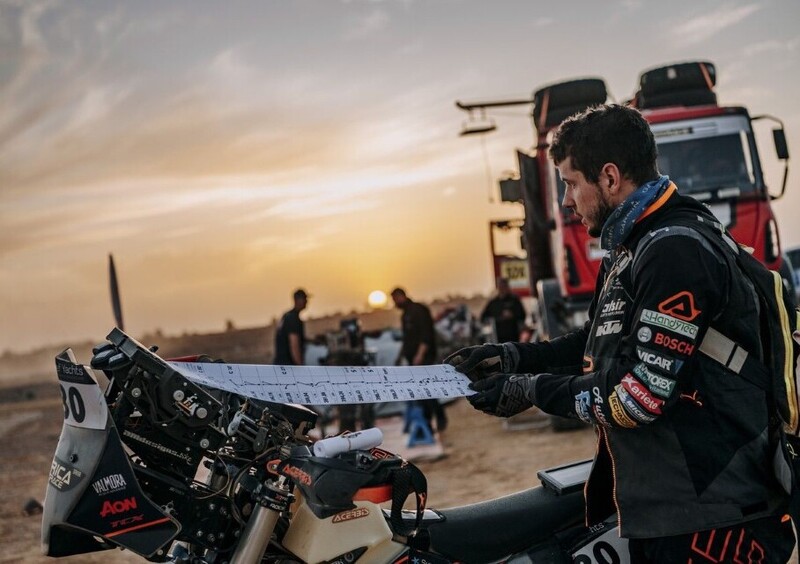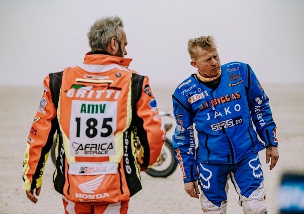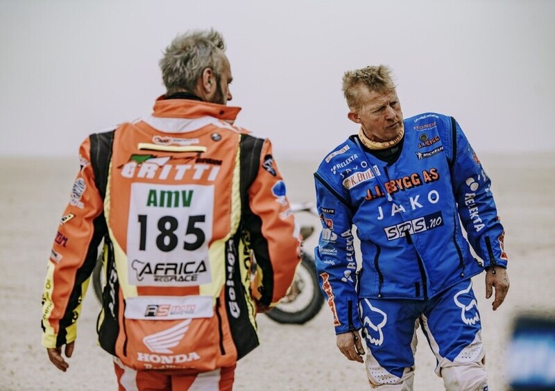 Alla guida di una Honda-RedMoto CRF (F starà forse per Fernando?) 450 RS Rally, ovvero una delle belle creature di Simone Agazzi, Gritti ha sfruttato la sua posizione di partenza con una disinvoltura da manuale. È risalito sui battistrada che gli aprivano la pista e, una volta ricongiunto al gruppetto che da dieci giorni batte il ritmo di Africa Eco Race, non ha corso rischi e ha sorvegliato quella che andava materializzandosi come la sua prima vittoria in Africa. Parte del “lavoro”, sicuramente stressante, gli è stato poi risparmiato dall’accorciamento della Speciale, interrotta alla neutralizzazione del rifornimento al chilometro 255 per un forte vento di sabbia e per dar modo agli elicotteristi di recuperare gli “incidentati” del giorno, e conclusa in trasferimento fino al bivacco di Idini.