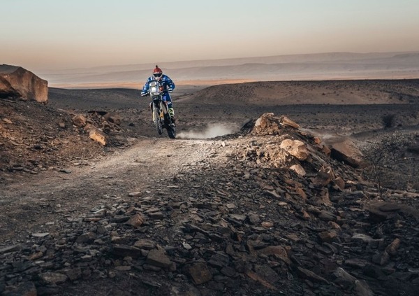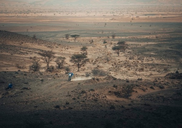 Tra Assa e Sidi Laroussi, una dozzina di chilometri da Smara, sulla lunga quarta prova speciale del Rally, 385 chilometri quasi del tutto inediti con grandi allunghi su piste di sabbia, ancora qualche pietra e una dose giusta di navigazione, è successo proprio questo. A parte un problema di strumentazione ballerina sulla Yamaha di Botturi, e in questo senso “Ulleval” non ne ha approfittato e, anzi, si è reso disponibile a dare una mano all’avversario e amico, tutto filava liscio fino a una cinquantina di chilometri dall’arrivo quando, stanchi di essere seguiti dai “ragazzi”, Botturi e Ullevalseter hanno deciso di allungare il passo e di mettere una certa distanza di rispetto, nella corsa come si esige tra le generazioni. Detto fatto… son partiti su una pista sbagliata, lasciando ai “ragazzi” lo spazio per approfittarne.