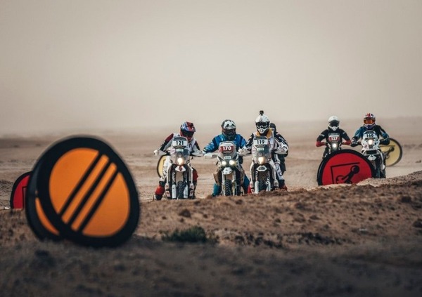 I particolari del quadro si compongono in modo magistrale. Come sempre in occasione di un grande evento. Paolo Lucci, terzo nella Chami – Aidzidine, è partito alle spalle di Sutherland e Gritti, li ha raggiunti e superati. Poi, attorno al chilometro 120, la sua moto si è spenta. Si è fermato e ha scoperto subito il tubo della benzina, staccato. Ha riparato ed è ripartito. Da solo. “Obbligato” a navigare, ad assumersi quella responsabilità.