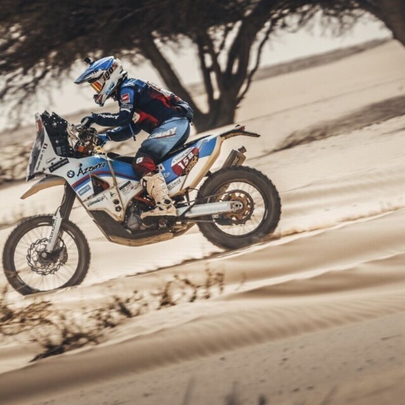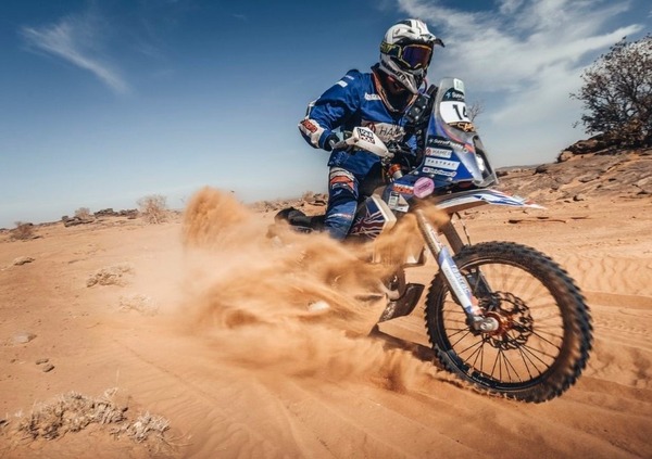 Oggi non piove, fa caldo, tira vento e il programma è “bugiardo” come quello della Speciale precedente. Un piccolo trasferimento dal bivacco, l’anello con partenza e arrivo a Nimlane, 415 chilometri di quello spettacolo contro il cronometro, di nuovo il trasferimento per tornare al bivacco. Ancora una tabella che nasconde un paio di ore di più di moto tra le dune.