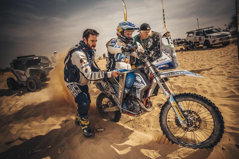 Grazie Jean-Louis Schlesser, grazie Anthony Schlesser. Grazie a Manfred Kroiss, il Direttore Sportivo, “trasparente” e onnipresente, presente a mai invadente. Grazie Jacopo Cerutti e tutta l’Aprilia dei GCorse per aver vinto con una Gara magnifica e generosa, Grazie Botturi, Tarres e tutta la Yamaha sul Campo per non aver mai mollato ed aver contribuito ad innalzare così tanto il livello. Grazie a Gautier Paulin per aver vinto con un prototipo ibrido la Gara delle Auto e grazie a Tom Tomicek per aver portato il Tatra su un altro olimpo. Grazie ai “senatori” che tornano ormai ogni anno, grazie ai Rookye del Trofeo Acerbis che scoprono per la prima volta. Grazie a un olimpionico di ciclismo che si scopre Marco Aurelio olimpionico… d’Africa e grazie e a un marcantonio del Calibro di Joan Pedrero che ha vinto la sfida impossibile con una H-D di serie. Grazie a tutti quelli che hanno allargato ogni sera la tavolata di ogni bivacco, ricreando attorno ai fornelli della “mamma” polacca di tutti quanti quell’ambiente tipicamente italiano nel quale non esistono barriere e nel quale un piatto di spaghetti è la bandiera. Grazie a… Grazie a tutti!😊