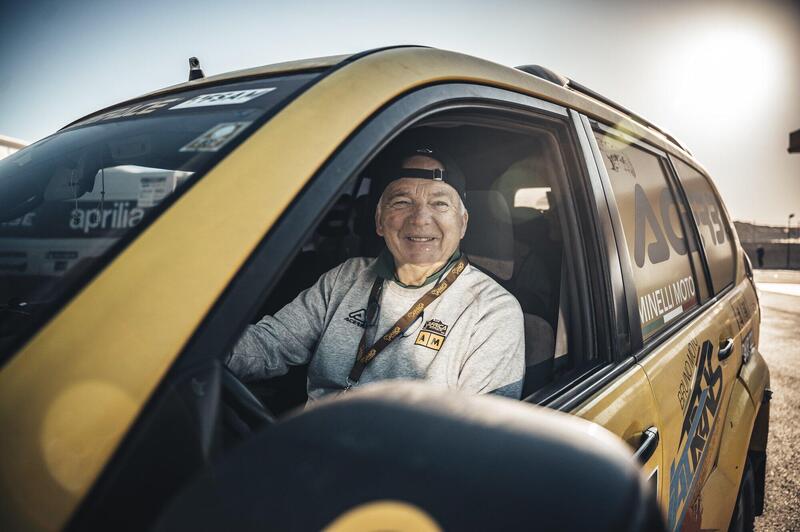 Sette chilometri dentro, Cerutti cade. Cappotta e danneggia il radiatore. Per fortuna il danno è lieve e rimediabile, ma tra controlli e soluzioni i “nemici” (in realtà tutti amici) di Yamaha se ne vanno. Tutto da rifare. Da quel momento Cerutti fa la sua corsa, obiettivo non sbagliare più e sfruttare al massimo la guidabilità della Moto. Più avanti tocca a Tarres. Lo spagnolo cade e danneggia il silenziatore di scarico.