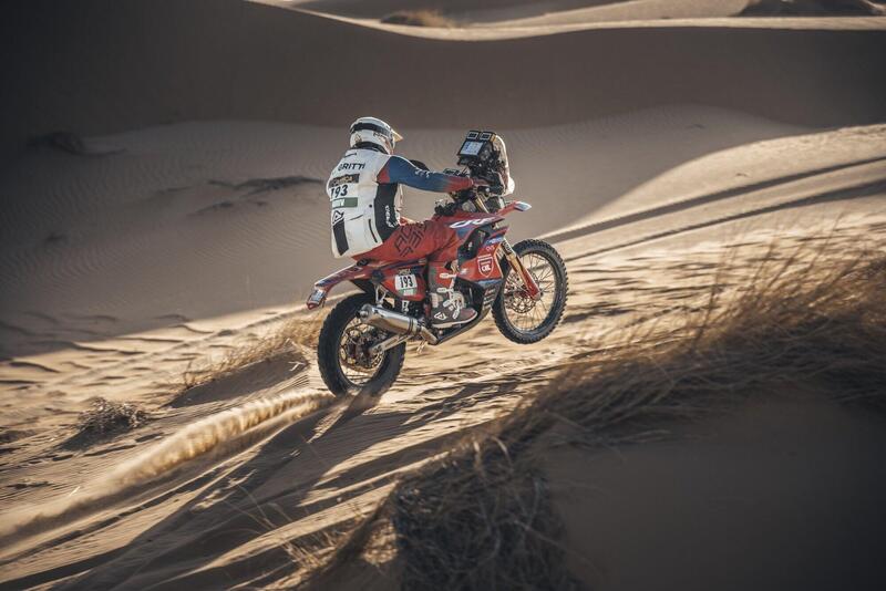 Cerutti e Botturi sono rimasti soli. Tarres è scivolato indietro per la penalità, salto di waypoint, e dal punto di vista del confronto non c’è storia, le monocilindriche annaspano ben lontane alle spalle delle possenti bicilindriche, quindi è Jacopo Cerutti, Aprilia, contro Alessandro Botturi, Yamaha. Si scambiano i ruoli, e ogni giorno si corre per fare una differenza minima, spesso solo circostanziale, legata talvolta al caso o più spesso all’ordine di partenza.