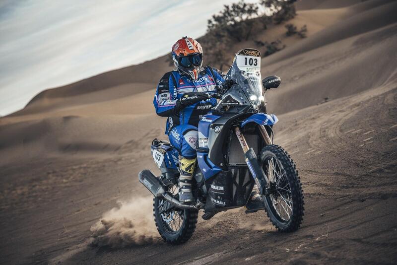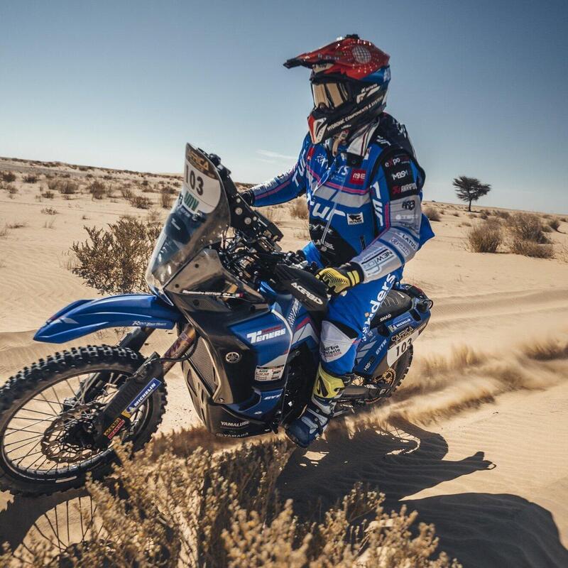Chami, Mauritania, 9 Gennaio 2024. Emanuele Vignali è il responsabile tecnico dello sviluppo in chiave racing delle Yamaha Ténéré 700 portate in gara da Alessandro Botturi e Pol Tarres. Per esteso è il realizzatore di quelle varianti che, portate sulla moto di serie, trasformano la moto del cliente in un’arma racing.