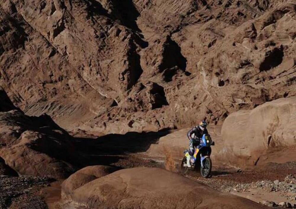 Due ore di “buio”, e la Speciale riprende al KM 410. Non è cambiato nulla. Lopez, Despres e Coma ripartono nell’ordine. Poi arriva la “scorciatoia” che taglia via la parte di Speciale cancellata, e Lopez commette un piccolo errore. È il primo, ed unico sussulto dell’intera tappa. Il cileno è costretto a cedere la leadership della Speciale ed a lasciar andar via Despres e Coma che, procedento ormai perfettamente appaiati, arrivano insieme a San Juan. Vince Despres, Coma è secondo, Lopez a sei minuti. Marc regala altri due minuti e 11 a Despres, che è ora un po’ meno lontano dallo spagnolo nella generale. 16 scarsi i minuti di ritardo del francese. Sono tanti o pochi, un’eternità irraggiungibile o nulla, dipende a questo punto dal ruolo dell’imprevisto che, solo, può ormai disturbare l’incedere trionfale del catalano. Ne sa qualcosa Carlos Sainz, vincitore della Dakar delle auto nel 2010 ed in testa fino all’altro giorno, fermo al km 400 della Speciale con la sua Volkswagen in panne.