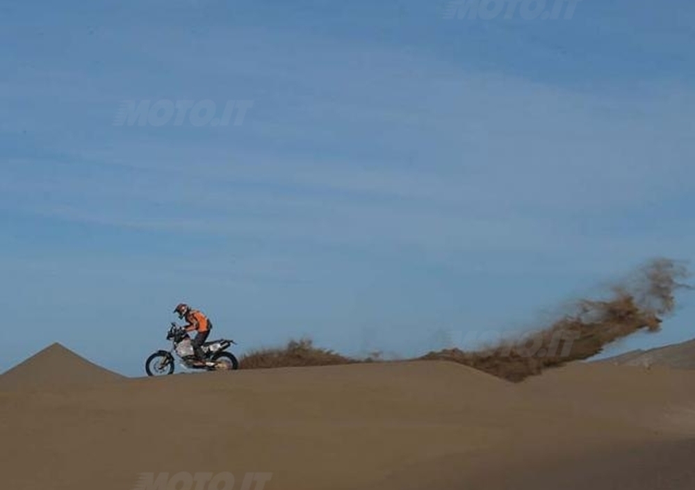 Torna a farsi vedere il norvegese Pal Anders Ullevalseter, secondo alla Dakar 2010, Alex Zanotti è oggi il primo degli italiani, 29°, David Casteu, in forte ritardo ieri per un guasto al cambio della sua Sherco, ha ripreso la sua corsa. Gonçalves è attardato da un problema meccanico, ed è uscito di scena il brasiliano Zé Helio. Delle BMW che hanno “rischiato” la doppietta ieri resta tra i primi dieci solo quella di Frans Verhoeven.