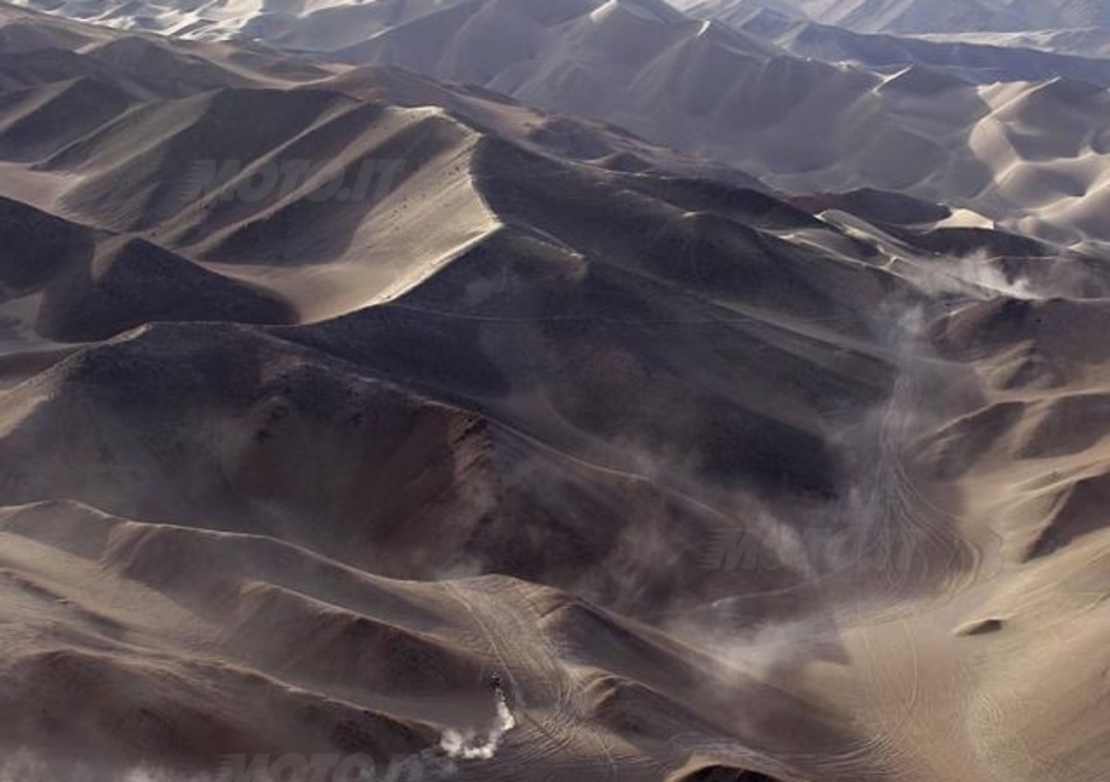 Gli “uffici amministrativi” della Dakar restano aperti nella giornata di riposo del Rally anche per un altro motivo. Per regolamento, infatti, i “dispersi” che non hanno ancora concluso la sesta tappa e che sono rimasti in pista hanno ancora le ore della giornata di… riposo per raggiungere Arica e re-integrarsi nella corsa. Per i piloti migliori il “rest day” è davvero un giorno per ricaricare le batterie, ma per quelli in difficoltà la giornata del giro di boa è, sovente, l’ultima chance, l’ultima spiaggia. In questo senso la giornata di riposo rappresenta un vero e sproprio spartiacque tra quelli che vedono incrementare le possibilità di “farcela” e quelli che, invece, sono inesorabilmente sconfitti dalla micidiale maratona. Sono le due facce dell’accampamento di Arica. Da una parte sveglia a tarda ora, moto completamente rimessa a nuovo, l’abbigliamento di una settimana, lavato, ad asciugare al sole, barba fatta e quell’espressione languida tipicamente… domenicale. Dall’altra il raddoppio di una giornata interminabile, l’innalzamento del livello di ansia, occhi gonfi che scrutano l’orizzonte desertico nella speranza di vedere arrivare il pilota che ha passato la notte nel deserto. 130 piloti sono partiti per la sesta tappa, tra Iquique ed Arica. In questo momento, al campo, ne mancano ancora 15. Per l’esito definitivo dovremo attendere la fine della giornata… di riposo. Guido Cusumano e Carlo Zuffetti, intanto, non hanno portato a termine la quinta tappa e, purtroppo per i due italiani, sono fuori gara.