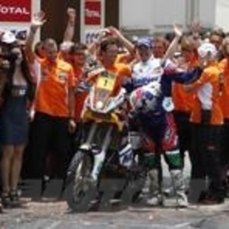 Marc Coma, che ha guidato la Speciale dal primo all'ultimo chilometro per oltre cinque ore di gara, è il primo a scendere lungo lo "scivolo" di sabbia che si affaccia sull'Oceano, ma i giochi sono ormai fatti. Cyril Despres, pago del lavoro di oggi, vince la sua terza Speciale di questa Dakar, recupera poco meno di 4 minuti all'avversario, e torna in testa alla corsa con un margine di due minuti e ventotto secondi. Helder Rodrigues (4° oggi e terzo in generale), si conferma tra i grandi se non per velocità almeno per rendimento ed affidabilità, ancora un Rally semplicemente impeccabile per il portoghese Campione del Mondo, ma la grande sorpresa di questa Dakar, possiamo cominciare a dirlo, è Joan Barreda (3° a Iquique), classe 1983, che con la Husqvarna del Team SpeedBrain è protagonista di una gara davvero stupefacente. Soltanto lo spagnolo, oggi, è riuscito a mantenere in qualche modo aperto il "contatto" con gli inarrivabili fuggitivi.