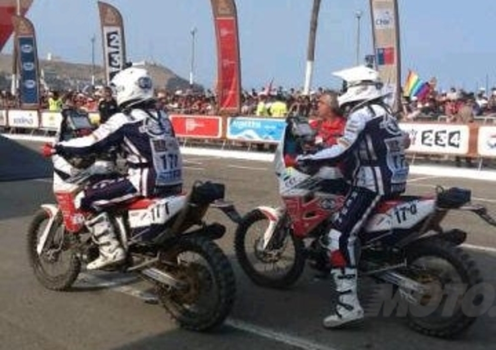 “Rampo” si esalta con l'acciarino vicino al serbatoio. A momenti facciamo brillare il villaggio Dakar e Lima. Fa notte. Finalmente siamo pronti, "controle final" passed, saliamo sul palco. 200mila persone. No, saranno stati 80/100 peruviani, ma per noi era come essere sul palco accanto a Vasco. Lo speaker incalza, noi riusciamo a salire tutti e 3 senza ucciderci. Intervista, non so che ho detto, scendiamo e andiamo verso il parco chiuso. Pietrone nascosto nell'erba, a momenti vado in terra.