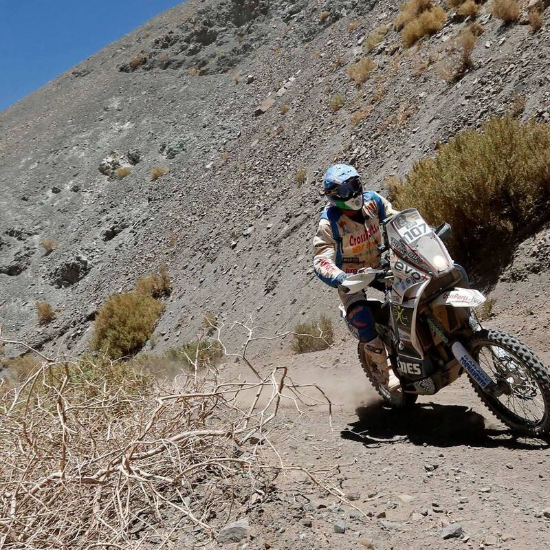 «No, per la verità l’idea di arrendermi non mi ha mai neanche sfiorato la mente. Ma non è che non ci ho pensato. Man mano che le ore passavano e che la distanza dall’arrivo rimaneva molto alta, è subentrata una specie di lucida delusione, il pensiero di non riuscire a farcela con il tempo che avevo a disposizione. Di arrivare al bivacco non più prima o poi, ma solo inesorabilmente… poi. Le dune di Iquique di notte, con tracce dappertutto e la sabbia scavata dal passaggio degli altri motociclisti e delle auto, beh, non le raccomando a nessuno. Non erano molti chilometri, e non impossibili a… cose normali, ma in quelle condizioni sono stati veramente un inferno».