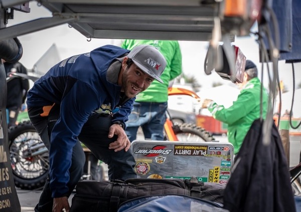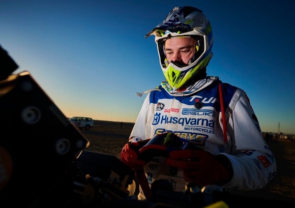 Cesare Zacchetti. Impressioni ottime. Prima settimana super divertente. Dura. Me l’aspettavo più facile visto che è la prima volta in Arabia. Con dieci ore di moto al giorno qualche rischio lo prendi sempre, moto o fisico sono sempre sotto scacco, ma finché è così direi che è una grande Dakar!