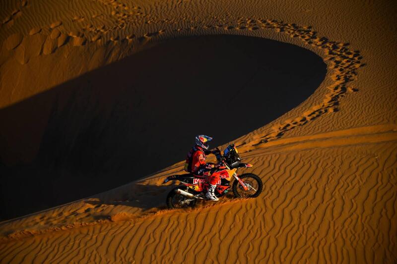 Ma non è certamente finita, e l’incidente di Price mette a nudo la vera, fondamentale natura della Dakar. Visto che le condizioni di Price non erano gravi Sam Sunderland avrebbe potuto continuare e rilevarne il posto e la “missione”. L’inglese di stanza negli Emirati, tuttavia, non ha esitato e non è ripartito finché il suo “capitano” non era al sicuro nelle mani dei medici. A Sunderland, come a Brabec, restituiranno il tempo della sosta di emergenza, ma nessuno può restituire la perdita di concentrazione e di ritmo che simili stop provocano.