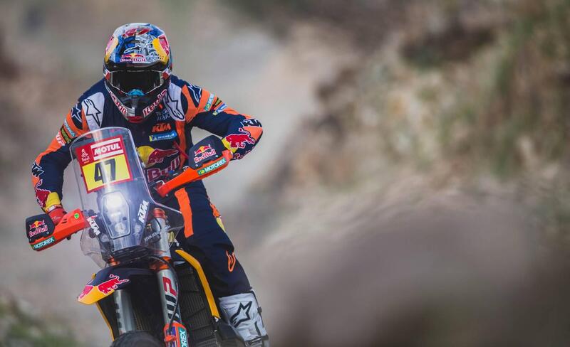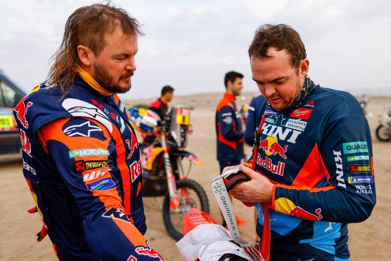 Attenzione! Va subito detta una cosa, che ci accompagnerà per tutta la Dakar delle Moto. I risultati della prima ora saranno suscettibili di aggiustamenti a posteriori. Sarà il tracking GPS ad avere l’ultima parola poiché sarà lo strumento di giudizio finale per penalità, tempo perso per buone ragioni (quindi da recuperare) e gestione degli inediti bonus per gli apripista. Le dinamiche della prima tappa aiutano immediatamente a capire qualcosa. A Mattias Walkner il jury restituirà il tempo trascorso a soccorrere Sunderland (forse un quarto d’ora). Sanders, GasGas, l’australiano che lo scorso anno fu fermato inesorabilmente, mentre lottava per il primato, da un… marciapiede in trasferimento e inizialmente dato per vincitore della Tappa, Quintanilla, Honda ufficiale, e Barreda, Honda “alternativa” Monster, dapprima a podio, son tutti penalizzati e scendono dal podio e in classifica. Infine Ignacio Cornejo, Honda, che ha aperto la pista navigando in testa per tutta la Speciale, vedrà il suo tempo corretto dal bonus. Considerato che il piccolo cileno è classificato 10 con 6 minuti e mezzo di ritardo, sarà interessante iniziare a capire se aprire la pista per i bonus è un affare oppure no. Di sicuro la prima tappa ha confermato che Cornejo è un buon apripista, veloce, abile nella navigazione e sicuro quanto basta per gestire la posizione più difficile della Dakar.