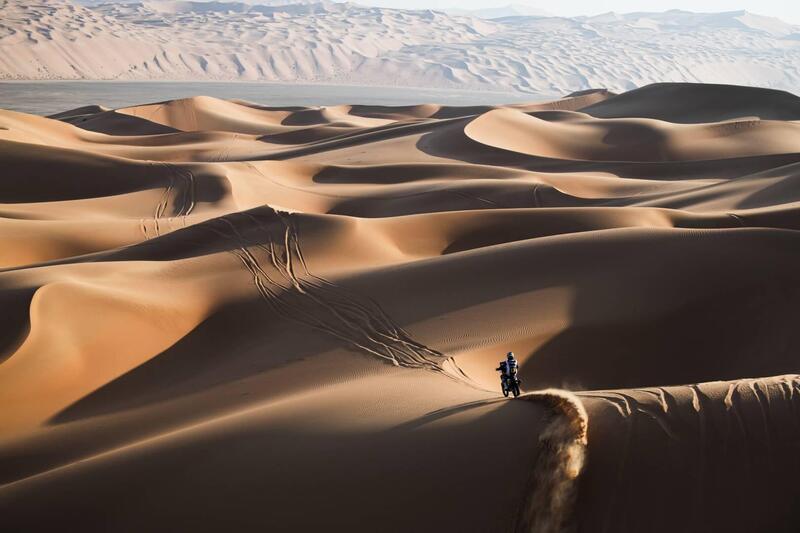 Shaybah, 13 Gennaio. Francamente sono perplesso. Un’altra tappa fulminata in meno di due ore. 185 chilometri alla media di quasi 95 chilometri all’ora. In un tempo così breve non ci sta né un caffè né, a vedere bene, una caduta men che importante. È la volata di uno stormo compatto, e infatti al traguardo di Shayba in cinque minuti sono in venti. Molto forte, e molto bella, è la sensazione che ancora una volta su questa terza volata con cui è stato attraversato l’Empty Quarter, i Piloti si siamo divertiti da matti, che vi abbiano trovato una delle sensazioni forti del senso della Dakar: la sensazione dell’attraversamento.