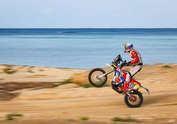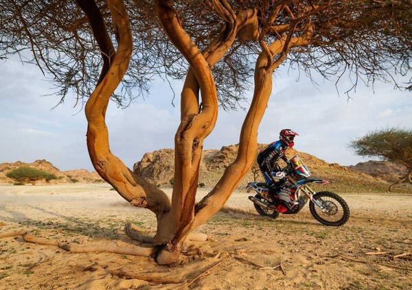 Corsa Bellissima. Molto equilibrata. Impossibile tracciare il profilo chiaro di un favorito vero. Forti tutti, i… forti. Strategie, compensi e ordine di partenza a parte, è Daniel Sanders, GasGas, che mena la danza per quasi tutta la Tappa (quando appunto non sono Klein o Docherty i più rapidi). In testa dalla seconda parte della Speciale, Sanders fa fatica a controllare la furia di Klein ma riesce a regolare Toby Price, KTM, e Joan Barreda. Ecco due favoriti, Price e Barreda. Sono tutti e due Piloti a rischio, con una differenza: l’australiano ha già vinto due volte, 2016 e 2019, lo spagnolo mai. Singolarmente, stanno disputando, quanto pare, la gara perfetta. Accorti, lungimiranti.
