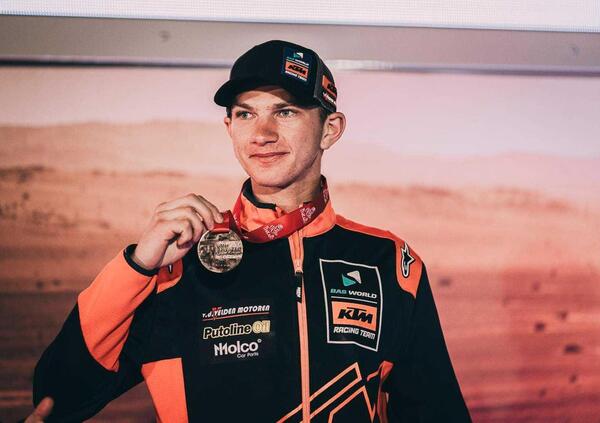 Alla prima versione della domanda ha già risposto Mr. Franco quando l’ha visto per la prima volta al traguardo. Tappa lunga e torrida, Mason è arrivato sereno, perfettamente in palla. Anzi. Il “verdetto” di Acerbis è stato lapidario: “Questo ragazzo andrà forte. Lo vedi da come arriva. Moltoi sono stanchi, altri distrutti. Lui è fresco e sorridente, guida di talento e si diverte. È come un “ibrido”: la felicità di correre divertendosi lo ricarica! In più, questo è evidente, il Deserto della California ha già insegnato molto al suo talento!”