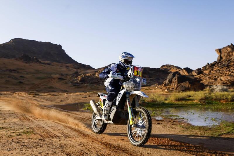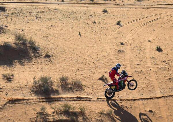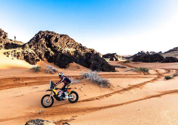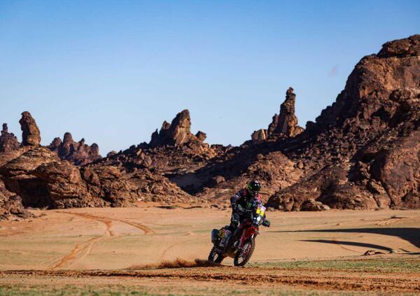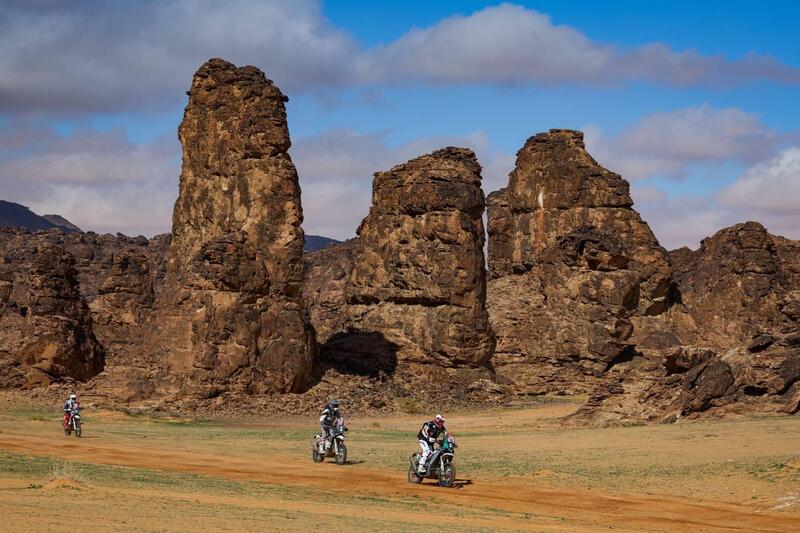 In vista del rifornimento, i tre ormai a vista commettono un errore di navigazione e sbagliano pista. Perdono tempo e consentono a Van Beveren, Honda, che invece ha azzeccato la navigazione in proprio, e Price, KTM, di passare a guidare il convoglio. Fuori dalla mischia e favoriti dall’ordine di partenza, Ignacio Cornejo, Honda, e Mason Klein, KTM, che non hanno partecipato alla larga distribuzione dei bonus apripista, giocano la carta della Speciale.