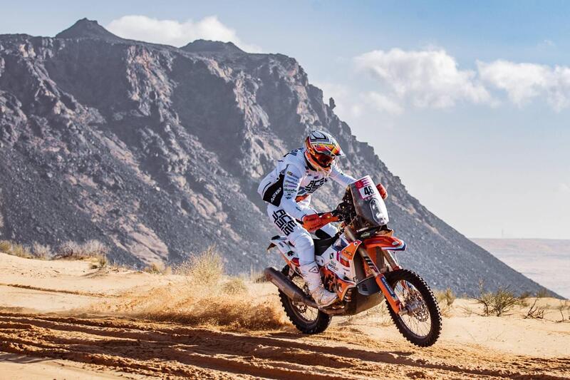 Nel freddo della notte di Ha’Il il primo a partire è Joan Barreda, detto Bang Bang, il vincitore della quarta Tappa. Barreda, che corre con l’alluce sinistro fratturato, non è il migliore del mondo quando si tratta di aprire la pista e poi, con l’introduzione dei bonus apripista, oggi fino al KM 209, la testa della corsa è diventata esplosiva, una vera guerra. E i giovani interpretano questa battaglia molto bene, senza risparmiarsi. Barreda, Honda, Quintanilla, Honda, e Howes, Husqvarna, provano a condurre le danze fino a metà tappa circa. Quintanilla risale velocemente su Barreda, Howes su entrambi. Ma il profilo della Speciale cambia radicalmente.