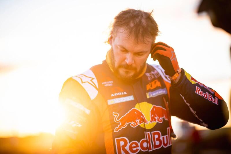 Paolo Lucci perde molto tempo verso la fine della Speciale. Mentre scriviamo non siamo in grado di stabilire se si tratta di un problema meccanico o di una caduta, ma possiamo escludere il peggio perché Lucci riparte e conclude al 23° posto. [UPDATE] In effetti Paolo è caduto dopo il rifornimento. Una gran botta ad alta velocità. Inizialmente sembrava tutto dovesse fermarsi lì, Paolo non riusciva neanche a rialzarsi. Poi sono passarti i dolori e sembrava tutto a posto… tranne la strumentazione sparita nel Deserto. Paolo è ripartito ed è arrivato. Al Bivacco i medici lo hanno visitato e, pollice alzato, tutto bene. Niente di rotto. Avanti.