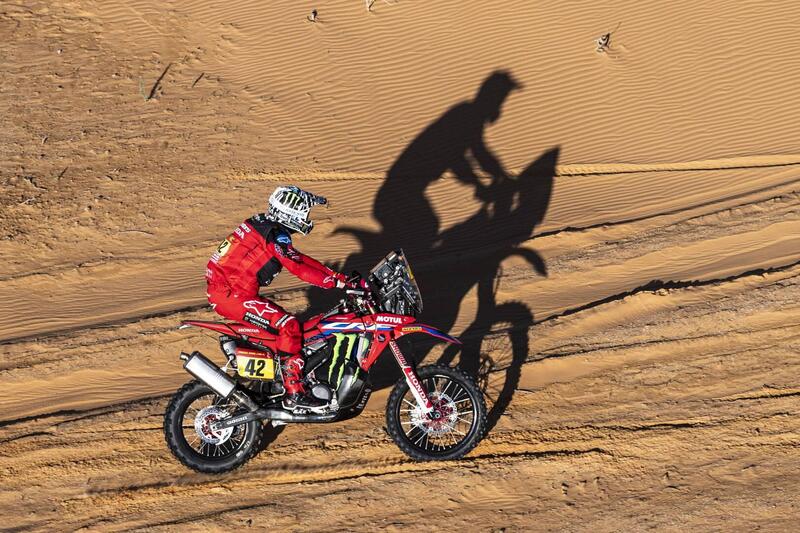 Van Beveren, Honda, che aveva vinto la quinta Tappa, apre la pista. Ignacio Cornejo e Toby Price si agganciano al francese in fuga e “tengono” il ritmo dell’”apertura”. I tempi migliori, tuVan Beveren, Honda, che aveva vinto la quinta Tappa, apre la pista. Ignacio Cornejo e Toby Price si agganciano al francese in fuga e “tengono” il ritmo dell’”apertura”. I tempi migliori, tuttavia, li ottengono Howes, partito dietro, Cornejo prima e Luciano Benavides, fratello di Kevin e ufficiale Husqvarna, dopo, che risalgono la classifica. Nonostante Adrien Van Beveren tenti il “colpaccio” andando in fuga da solo nell’ultimo rush della Speciale, il francese neo acquisto del Team Honda ufficiale non può che limitare i danni. Tappa evidentemente poco favorevole agli apripista, nonostante i bonus.ttavia, li ottengono Howes, partito dietro, Cornejo prima e Luciano Benavides, fratello di Kevin e ufficiale Husqvarna, dopo, che risalgono la classifica. Nonostante Adrien Van Beveren tenti il “colpaccio” andando in fuga da solo nell’ultimo rush della Speciale, il francese neo acquisto del Team Honda ufficiale non può che limitare i danni. Tappa evidentemente poco favorevole agli apripista, nonostante i bonus.