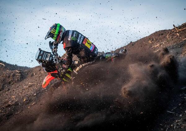 JBBB. “Uhmmm, non mi piace. Non mi piace la tua strategia (se la ride a crepapelle). Sì, sicuro che cercherò di portare a termine la prima settimana senza sbagliare, questo te lo concedo. Ma vedi che, alla fine il fatto è che, se parto dietro spingo, e se parto davanti… spingo! Allora succede che spingo tutto il giorno e non è facile. Il “consumo” fisico e mentale è molto alto, soprattutto quando apri la pista e ti incarichi della navigazione. Però è la mia indole, non sono una persona che si risparmia, guidare la Moto, forte, è la mia passione.”