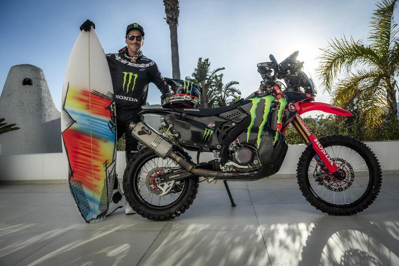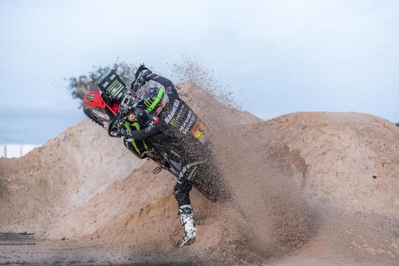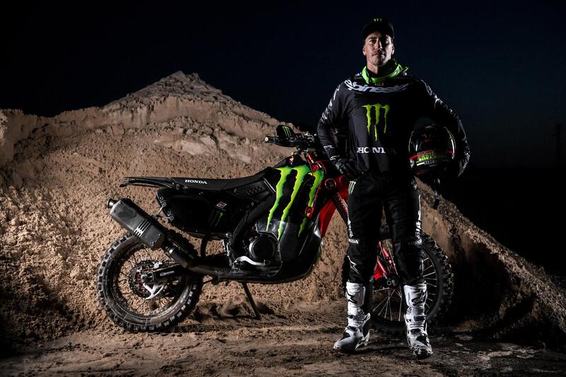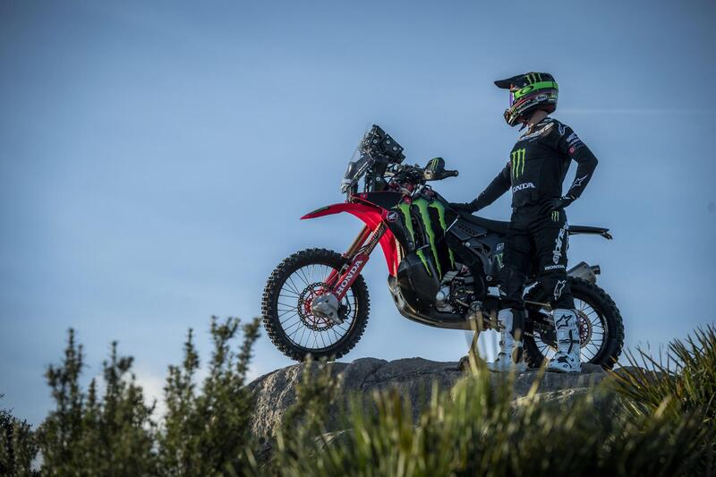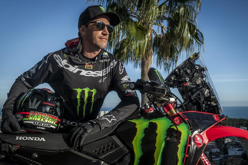 JBBB. “Per loro immagino che non fosse troppo facile implementare la Squadra a quel punto, per logistica e costi, così abbiamo deciso che mi avrebbero dato una Moto un po’ più “libera”, e io avrei coperto una parte dei costi del progetto. Un po’ più libera vuol dire anche che potevo occuparmi di più dello sviluppo, che è una parte che mi piace. Siamo stati in California a lungo, abbiamo lavorato su alcune parti nuove, le abbiamo collaudate e io le porterò in gara alla Dakar. Anche questo apporto di fiducia reciproca mi è piaciuto molto. Non so ancora come sarà effettivamente durante la gara, è HRC che ha predisposto e a me va benissimo. Credo che possiamo sintetizzare con una tenda un poco diversa e una moto dai colori un po’ diversi, e con qualche novità, peraltro indistinguibile. Anche per gli sponsor non cambia molto, alla fine è una Moto un po’ più “dark”, più Monster.”