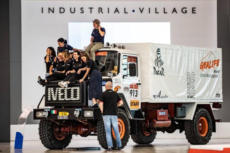 I giganteschi locali dell’IVECO Village si prestano perfettamente alla bisogna. Tra i “mastodonti” del Marchio, quei Camion che hanno fatto la storia dell’avventura e dell’esplorazione, ambientare il proposito di Dakar è stato facile, così come è stato facile riunire i fedelissimi della maratona africana, poi sudamericana e infine arabo saudita, i debuttanti in avvicinamento e, anche, un buon numero di interessati curiosi.