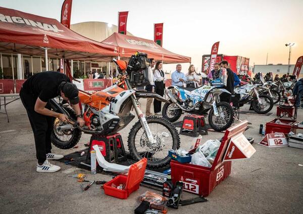 GM. “Non mi ponevo il problema. Stavo e mi sentivo bene, tutto entrava nei tempi e nel modo giusto. Mi ero detto che i primi tre giorni dovevo finirli, sembravano (ed erano), i più difficili, poi ho spostato l’obiettivo sulla giornata di riposo, quando avrei rivisto mi moglie Cate e gli amici, Federico e la combriccola venuta dall’Italia. Intanto un obiettivo fisso: trattare bene la Moto, fare la manutenzione e i controlli cercando di prevenire gli imprevisti, mangiare, dormire, alzarsi, prepararsi e andare. Ho visto gente già in affanno, anche più lenta che sembrava arrivare dalla guerra, che lasciava indietro le operazioni e aggiungeva incertezza allo stato generale. Avere, trovare e organizzare il tempo. E trattare bene la Moto. Sono due cose importanti. Una sola scivolata in tutta la Gara, solo un paramani rotto, marce lunghe, mai tirare il collo al motore, cercare di assecondare le difficoltà con la guida. In questo modo oserei dire che è stata una Dakar noiosa, perché non ho mai avuto un evento straordinario cui rimediare. Mi sentivo come a casa.”