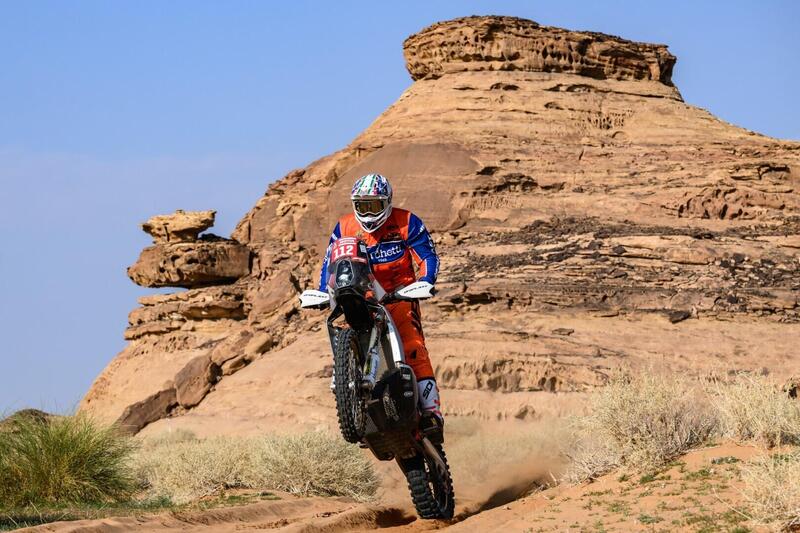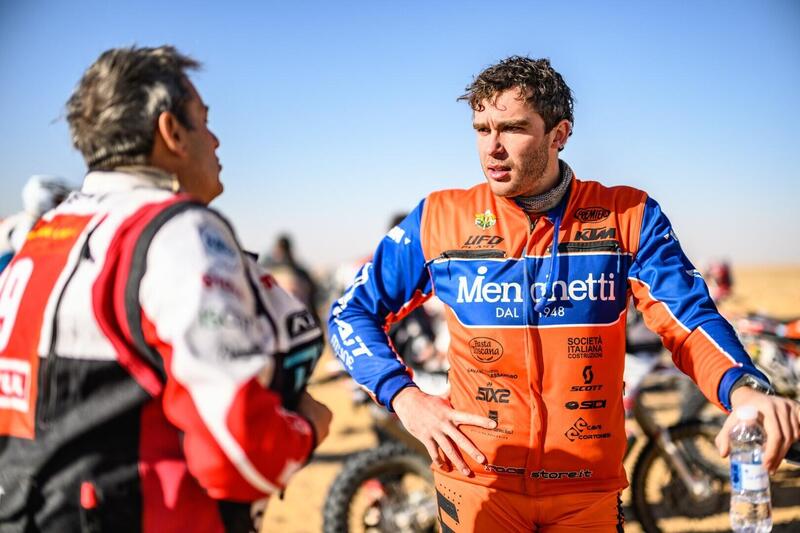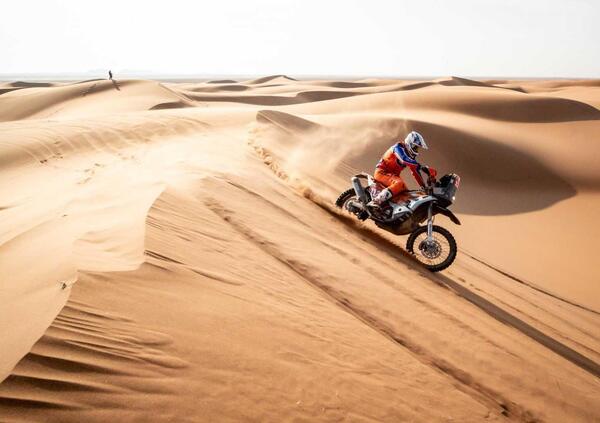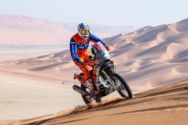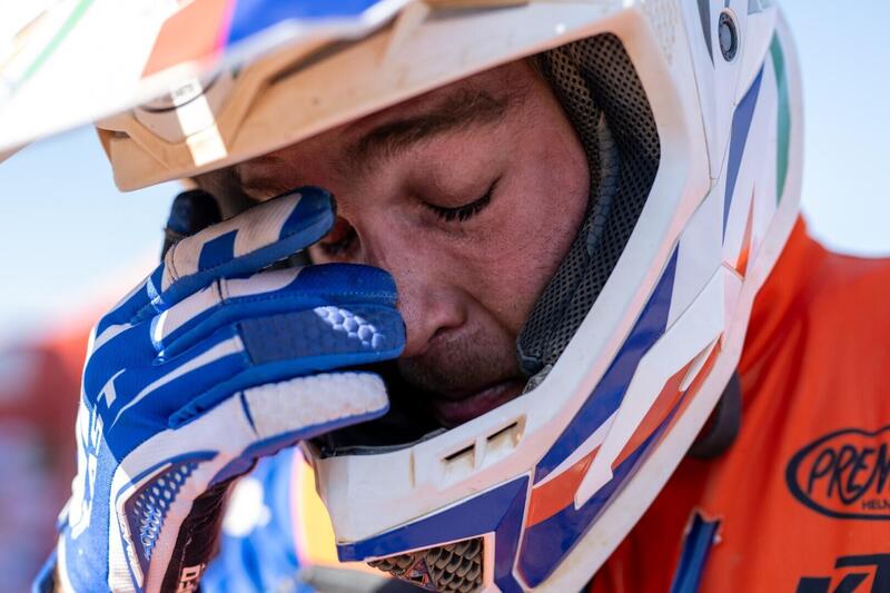 GM. “Il primo giorno. Solo quello. Duro sì. Lì si è capito che era una Dakar da “scrematura” veloce. Era una tappa in uno scenario irreale, da videogioco. Ci hanno buttato dentro a un vulcano. Lava, pareti e nero. Road book uniforme: “Enter lava”, “exit lava”, “follow the black wall”, via così. E grip zero. Piano, sempre più piano per non scivolare. Mai più di venti chilometri orari. Pensavo che non l’avrei mai finita con la luce del sole. È lì che Schareina, che perseguiva un risultato immediato, è andato oltre e, cercando di fare la differenza, è caduto e si è ritirato. Anche i “big”, mi sono accorto poi, hanno abbassato drasticamente le loro medie. Un po’ meno Brad Cox, che si è rivelato un grande compagno di avventura, un amico, che quel giorno ha fatto il quarto assoluto.”