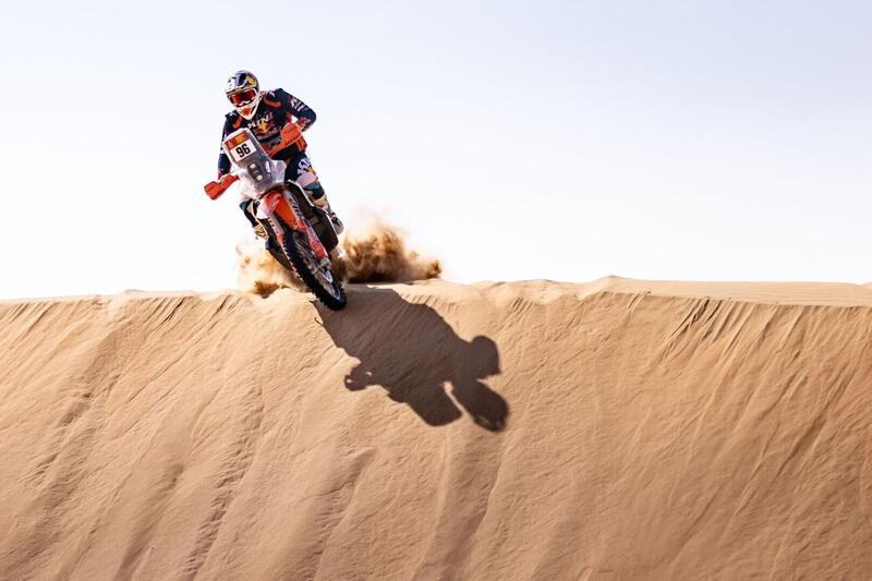 Caldo bestiale, Luciano Benavides, KTM, parte e resta da solo per tutta la Speciale. Un minuto e passa di Bonus Apripista, ma l’avanzata è stata obbligatoriamente delicata e lenta, e alle sue spalle in molto si son fatti sotto, soprattutto che partiva dalle retrovie. Van Beveren, Honda, e Sanders, si avvicinano, ma chi guadagna davvero è chi è partito dalla decima posizione in poi, Michael Docherty, KTM, Ruy Gonçalves, Sherco, Tobias Ebster, KTM. Schareina, Honda, ci prova, ma capisce ben presto che non è la giornata della grande occasione. Si accoda nella risalita, inizia a pensare al domani, che arriva subito e che è, di fatto, l’ultima occasione per un rovesciamento di fronte che sarebbe clamoroso. Anche Sanders, KTM, rallenta nel finale per non mettersi nei guai con l’ordine di partenza, ma l’australiano porta a casa comunque la pagnotta del giorno.