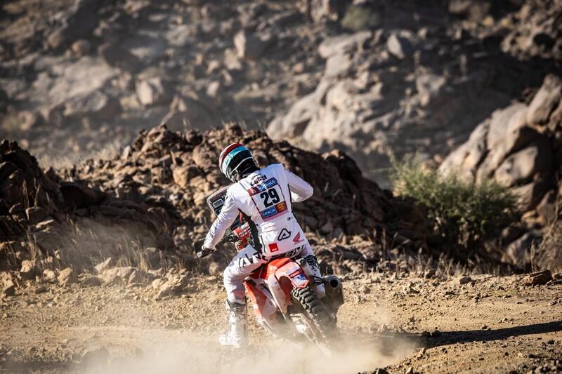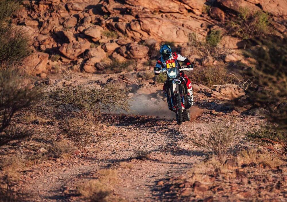 21 Piloti Moto hanno raggiunto l’avamposto E, 608° chilometro. È in riflesso della strategia di gara consentita dall’ordine di partenza. Usciti d Bisha in ordine inverso rispetto alla classifica di giornata, i primi si sono rapidamente compattati, così vicini da condividere anche molti “bonus apripista”, curando soprattutto di non disperdere energie in errori e sbagli. Sanders ha fatto il suo per proteggere il proprio vantaggio, lo Squadrone Honda ha incalzato, molto attivi soprattutto Schareina e Brabec, alzato il ritmo e “rosicchiato” tempo. Sul podio di mezzanotte al Bivacco “E” salgono Daniel Sanders, KTM, Ricky Brabec, Honda, e Ross Branch, Hero, separati da pochi minuti, l’ultimo dei 21 è Aaron Mare, dei big è fermo al bivacco precedente Kevin Benavides. Gli italiani sono indietro, ma alcuni non troppo. Andy Winkler, Tommaso Montanari e Tiziano Internò cenano al Bivacco C, dove non è arrivato Paolo Lucci, a lungo nei 20 durante la Speciale (evidentemente un problema), che si è fermato a B insieme a Lucchese. Iader Giraldi è l’ultimo dei nostri ed è atteso al Bivacco A (le cucine stanno per chiudere). Ovunque siano, pochi o tanti, tutti insieme appassionatamente al mini-bivacco.