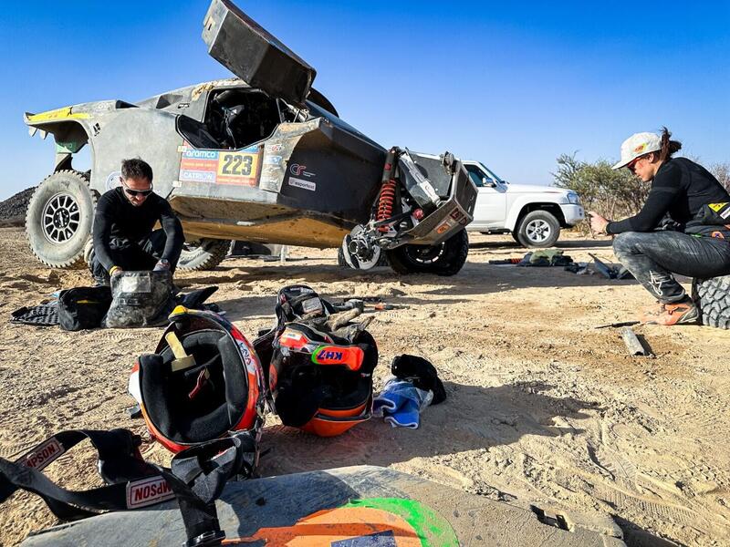 27, invece, le Auto alla stessa break zone E. Al Rajhi e Timo Gottschalk, Toyota, battono al virtuale di due terzi di 48H Chrono Nasser Al Attiyah e Edouard “Dud” Boulanger, Dacia, e Mattias Ekstrom e Emil Bergkvist, Ford. Toyota, Dacia, Ford, è forse uno dei successi più evidenti della Dakar, quello di riuscire a coinvolgere la Fabbriche di auto. Ultimo dei 27 invitati al party del Bivacco E è Cristina Gutierrez, Dacia, mentre Eugenio Amos e Paolo Ceci hanno accettato il menù del Bivacco C, mentre Francesca Gasperi e Agostino Rizzardi si trattengono al barbecue del Bivacco B (la lettera “B” stava ad indicare questo?). Si direbbe che i due rookie abbiano disputato una prima parte di 48H Chrono davvero eccellente. Giornata difficile per Sébastien Loeb e Frederic Lurquin, Dacia, alle prese per tre volte con un problema, e quindi per tre volte costretti a soste per fortuna brevi, e brivido per Carlos Sainz e Lucas Cruz, che hanno messo la loro Ford M-Sport Raptor sul tetto al 300° chilometro. Per fortuna l’Equipaggio ha potuto riparare (anche con l’aiuto del nuovo compagno di Squadra Mitch Guthrie), e sono al bivacco dei VIP.