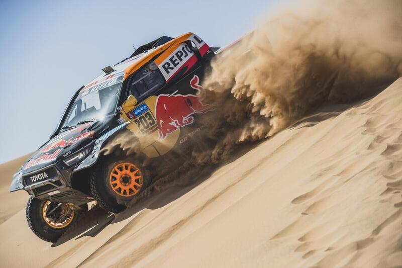 La terza tappa delle auto è segnata immediatamente dall’incidente di Sébastien Loeb, poco dopo la partenza della Speciale, il “Cannibale” manda in uno spettacolare tonneau la sua Dacia ma non si arrende. Ripara quel che può, riparte, si ferma ancora ad aggiustare, prosegue. Riesce a concludere, come Sainz il giorno prima con un buggy-zombie. Lascia sulla pista oltre un’ora. È molto, verosimilmente troppo, ma questo primo scorcio di Dakar suggerisce di non dar troppo peso a cronometri e distacchi, è piuttosto una questione di sopravvivenza. Un’altra osservazione che si può fare è che ‘sti buggy di ultima generazione appaiono un po’ leggerini in velocità sulla grande escursione delle sospensioni. È il prezzo da pagare all’altare della prestazione? Intanto, trattandosi di machine nuove e al debutto alla Dakar, la principale preoccupazione è l’affidabilità. Adesso, sicuramwente anche la Dacia di Loeb passerà ai "raggi X" della FIA.