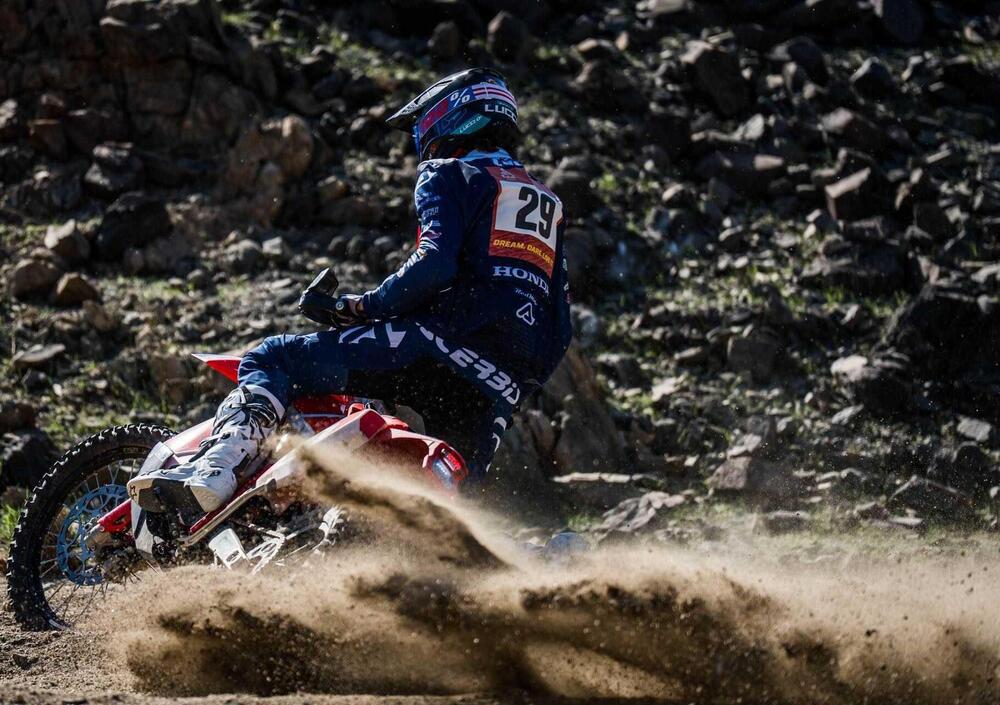 Tra gli italiani in Moto, non conta oggi che si vada a vedere in che posizione di classifica si sono venuti a trovare, notiamo tuttavia il 29° posto del numero… 29, Paolo Lucci (chissà che non porti bene), Tommaso Montanari è dieci posizioni più giù. Poi Andrea Gava e Tiziano Internò. Altre filosofie di Dakar. Cesare Zacchetti e Mattia Riva, invece, non si sono certo dannati l’anima in questi primi 23 chilometri. Tra gli Italiani in Auto, non certo uno sciame, Silvio e Tito Totani, Optimus MD, sono nel primo terzo di classifica, e in quello successivo troviamo Rebecca Busi, che peraltro corre con il prototipo leggero Fenic di X-Raid.