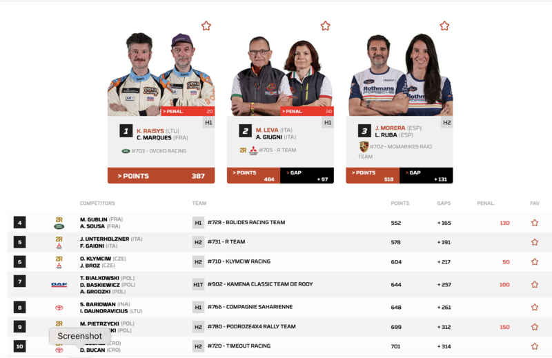 “Noi” siamo forti. Son scesi in campo gli assi della storia, per esempio i Team di Renato Rickler e di Maurizio Traglio, sono state riportate all’antico splendore le Mitsubihi e le Nissan della Storia, sono arrivati dei pezzi da novanta come le affascinanti repliche delle Porsche 959 e gli Unimog. Soprattutto, sono arrivati quest’anno 100 partecipanti, limitati da un tetto degli organizzatori, e di questi un quarto sono italiani. Si vede che abbiamo buon gusto.