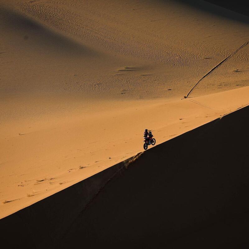 Vince Skyper Howes, ed è una prima, davanti a Van Beeren e Canet rilanciato dalle retrovie. Poi, appunto, Benavides e Schareina, e solo a quel punto Brabec, sesto, che non concede più di un minuto e mezzo a Benavides. Il gioco risulta più esplicito. Benavides torna al comando, Brabec è dietro di appena 23 secondi, ma con due handicap: quello di partire due posizioni davanti al Brabec, e quello di essere sostanzialmente solo. È vero che, ormai, se la giocano in due, uno contro uno, però non si sa mai, anche un supporto psicologico alla fone può fare una piccola, ma determinante, differenza. Daniel Sanders, che ha dovuto alzare bandiera bianca dopo l’incidente della decima tappa, è ripartito nonostante il forte dolore ma ha resistito e difende la quarta piazza e, con questa, la sua stagione da detentore del Campionato del Mondo. Di salto di qualità in conferma, ecco un altro piazzamento “vero” di Paolo Lucci, 16° ma in Dakar Experience, davanti a Tommaso Montanari che, 21°, è il primo, consistente, degli italiani.